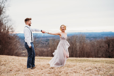 Megan & Mark's engagement session at Rice's Fruit Farm in Wilbraham was no exception to this. We started out at the farm stand and found a couple fun spots to use. We were sure to get a few shots with the fur baby! We then ventured down the road to the hiking trail. After a short hike to the top I started to setup and we soon realized how cold and windy it had gotten! We worked quickly to get a couple shots and then headed up farther to find some relief from the wind. Mark and Megan were such troopers throughout the session and their fun, easy going spirits really shined through in their images. I can't wait for their January '21 wedding!!